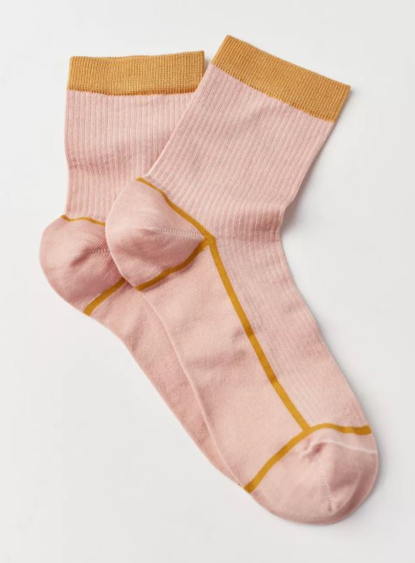 Pink ankle socks paired with a classic flat loafer are a fun nod to fall while still being comfy to wear, just in case there is a line at the voting booth.
