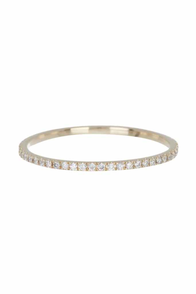 Delicate with a touch of sparkle, I wear this beaded gold ring with a tiny diamond every day, either alone or as part of a stack.