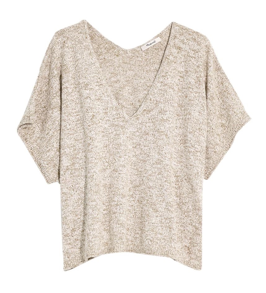 This sweet short-sleeved sweater looks as easy as a tee, but with just a little something extra. I went with the “marled oreo” grey, but this oatmeal-ish olive is just as cute.