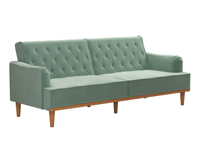 For overnight guests (and because I loved the color), we now have a sweet tufted couch that folds down into a full-size sleeping spot. I have it draped in a throw by Matilda Goad & Co. for Anthropologie, which picks up the minty color beautifully.