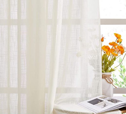 Several updates have been artwork related which I’ll post about soon (peek and hint here!), but another recent addition has been hanging some long-desired curtains. The unique window placement and shape in our old house — a mixed commercial/residential duplex — has stumped me for years, but I finally took the plunge with some linen-y textured sheers and some warm gold curtain rods. I’m really happy with the results! The gauzy, filtered light in our living spaces is so, so pretty.