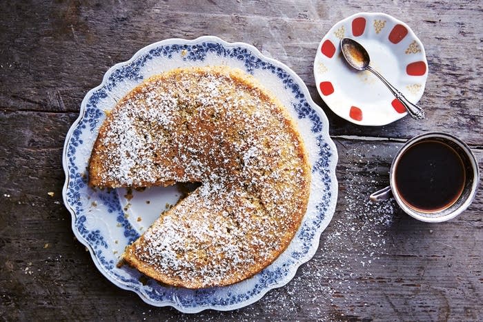 For some light and easy sweetness, may I recommend Julia Turshen’s Afternoon Cake? I make this regularly and it could not be simpler or more satisfying. Just use the nut flour of your choice (I like almond flour) instead of finely grinding your own nuts to make it even quicker. Makes one perfect olive oil cake, citrusy and not too sweet, to enjoy for any reason — or no reason at all.