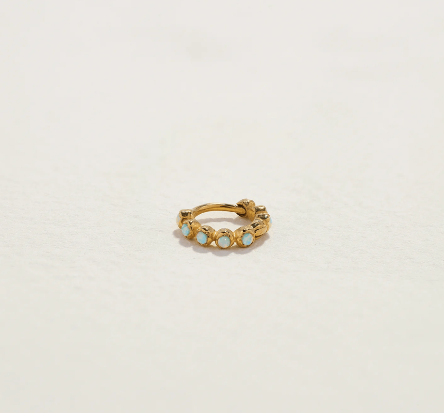 Delicate with a touch of sparkle, I wear this beaded gold ring with a tiny diamond every day, either alone or as part of a stack.